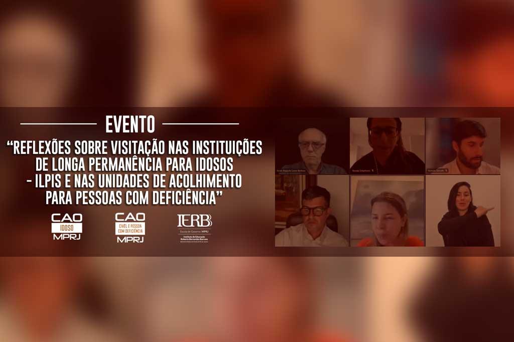 O Ministério Público do Estado do Rio de Janeiro (MPRJ), por meio do Instituto de Educação Roberto Bernardes Barroso (IERBB/MPRJ), dos Centros de Apoio às Promotorias de Justiça de Proteção à Pessoa Idosa (CAO IDOSO) e às Promotorias de Justiça Cíveis e de Tutela Coletiva da Pessoa com Deficiência (CAO CÍVEL/PESSOA COM DEFICIÊNCIA), realizou, na quinta-feira (17/05), o evento “Reflexões sobre Visitação nas Instituições de Longa Permanência para Idosos – ILPIs e nas Unidades de Acolhimento para Pessoas com Deficiência”.