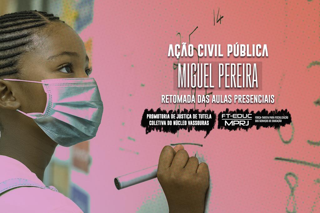 O Ministério Público do Estado do Rio de Janeiro (MPRJ), por meio da Promotoria de Justiça de Miguel Pereira, da Promotoria de Justiça de Tutela Coletiva do Núcleo Vassouras e da Força-Tarefa de Educação (FT-¿Educação/MPRJ), ajuizou, na terça-feira (29/06), ação civil pública, com pedido de antecipação dos efeitos da tutela, em face do município de Miguel Pereira e do prefeito, André Português. O MPRJ requer que a Justiça determine ao município que retome, no prazo de 24 horas, as atividades presenciais na rede municipal de ensino, em conformidade à Lei de Diretrizes e Bases da Educação, de forma segura e presencial, ainda que com capacidade limitada, com possibilidade de adoção de atividades complementares remotas, num sistema híbrido.