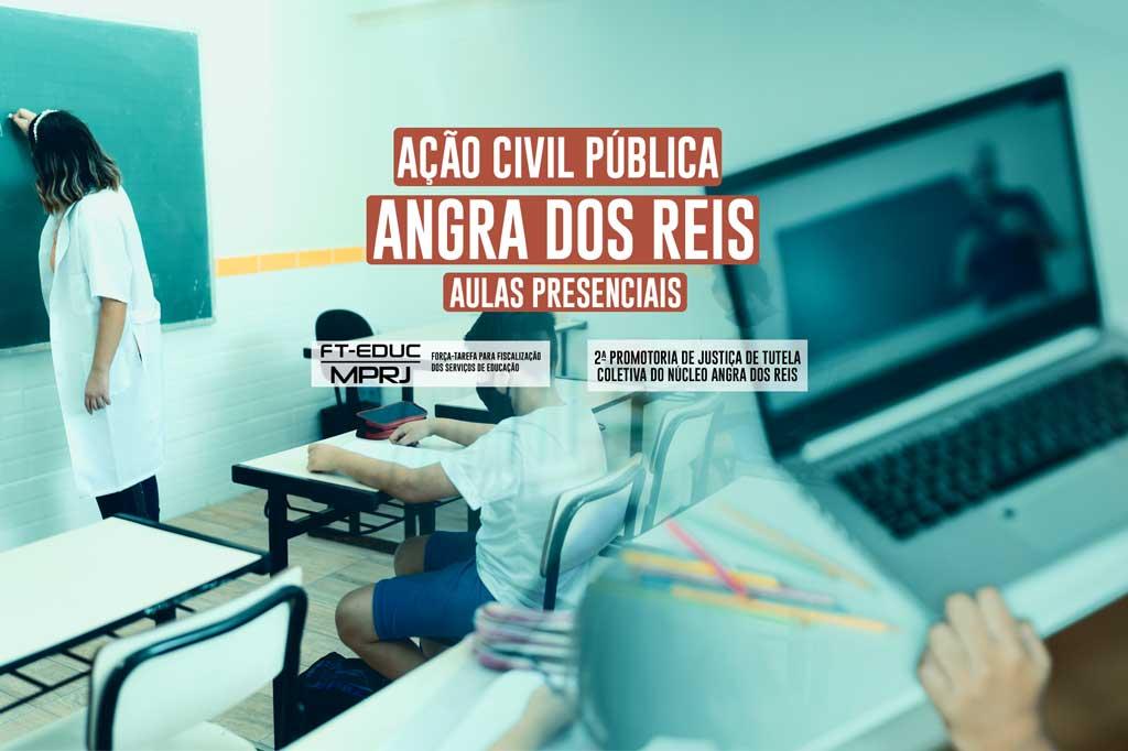O Ministério Público do Estado do Rio de Janeiro (MPRJ), por meio da 2ª Promotoria de Justiça de Tutela Coletiva do Núcleo Angra dos Reis e da Força-Tarefa de Educação (FT-¿Educação/MPRJ), ajuizou, em 30/06, ação civil pública, com pedido de antecipação dos efeitos da tutela, em face do município de Angra dos Reis, e do prefeito, Fernando Antônio Ceciliano Jordão. O MPRJ requer que a Justiça determine ao município que, à luz dos indicadores das bandeiras sanitárias e do Painel de Indicadores COVID-19 do Estado, preste e regulamente, de modo adequado e segundo a Lei de Diretrizes e Bases da Educação, o serviço público educacional. Aponta o MPRJ que o mesmo deve ser retomado de forma segura e presencial, ainda que com limitação em quantativivo de alunos em sala e/ou de forma híbrida, num misto de atividades presenciais e remotas.