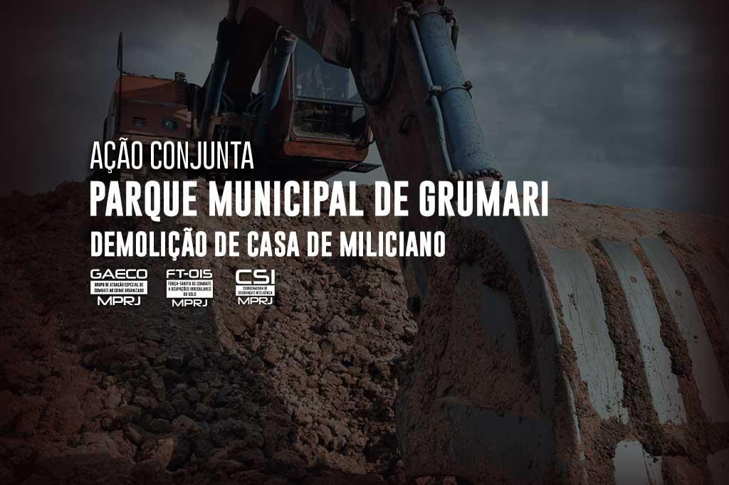 O Ministério Público do Estado do Rio de Janeiro (MPRJ), por meio da Força-Tarefa do Grupo de Atuação Especial no Combate ao Crime Organizado para enfrentamento à ocupação irregular do solo urbano (GAECO/FT-OIS), com o auxílio da Coordenadoria de Segurança e Inteligência (CSI/MPRJ), participa, na manhã desta quinta-feira (28/10), de uma ação conjunta com a Secretaria Municipal de Meio Ambiente da Cidade (SMAC) e a Polícia Militar Ambiental, para demolir a casa do braço direito de Adriano da Nóbrega, o miliciano Luis Carlos Felipe Martins, conhecido como Orelha. O imóvel fica no Parque Natural Municipal de Grumari, na Zona Oeste, Unidade de Conservação de Proteção Integral.