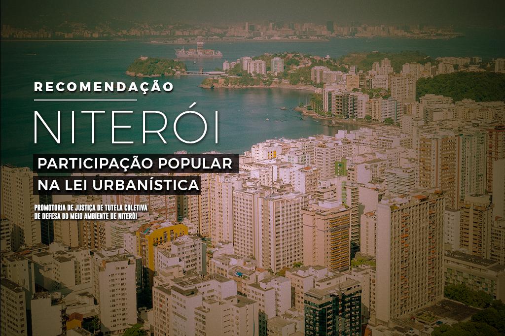 O Ministério Público do Estado do Rio de Janeiro (MPRJ) recomendou ao poder público de Niterói que seja garantida a participação popular durante as discussões referentes à revisão da Lei Urbanística do município. Devido a uma série de irregularidades verificadas durante as audiências públicas realizadas sobre o tema, no último dia 24/02 foi encaminhada uma Recomendação para que a Prefeitura e a Câmara Municipal agendem uma nova audiência pública na Região Oceânica, possibilitando a ampla participação popular. O documento, encaminhado pela Promotoria de Justiça de Tutela Coletiva de Defesa do Meio Ambiente de Niterói, dá um prazo de cinco dias úteis para que Executivo e Legislativo se manifestem.