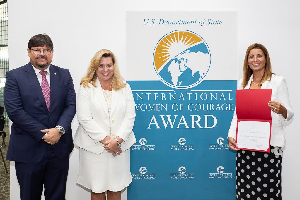 A promotora de Justiça Simone Sibilio, membro do Ministério Público do Estado do Rio de Janeiro (MPRJ), foi homenageada, nesta segunda-feira (14/03), na edição anual do Prêmio Internacional Mulheres de Coragem (IWOC, na sigla em inglês). O título foi entregue pelo secretário de Estado dos Estados Unidos, Antony J. Blinken, durante solenidade virtual e presencial, na sede do Consulado Americano, no Centro do Rio. A premiação de 2022 homenageou a atuação de doze mulheres que se destacaram em suas profissões no mundo todo. Simone é a segunda brasileira entre as 170 mulheres já homenageadas, se juntando à então major da Polícia Militar Priscilla Azevedo Barlleta, agraciada há 10 anos, e atualmente comandante da Coordenadoria de Polícia Pacificadora.