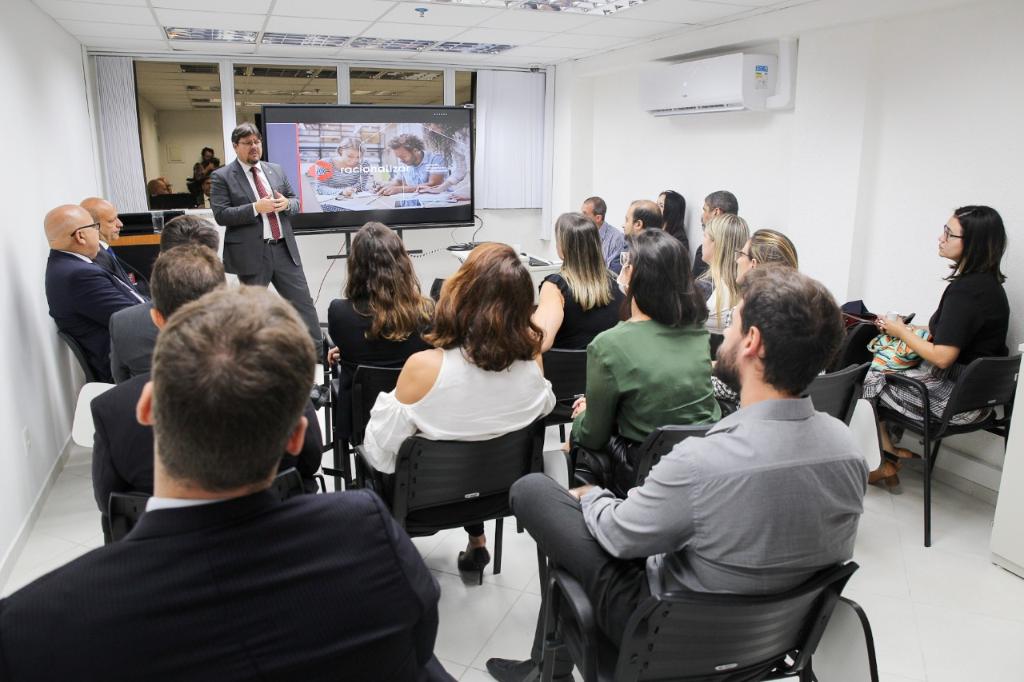 Quatro servidores da Secretaria-Geral de Planejamento Institucional acompanham a comitiva para apresentar propostas e colher informações relacionadas ao projeto Racionalizar, que tem a premissa de integrar a gestão de forma a alcançar melhores resultados. Andreia Rodrigues da Silveira, Tales Rodrigues da Silva Gonçalves, André Oliveira Herdy da Silva e Fellipe Figueiredo Silva também detalharam aos membros locais outros projetos institucionais, como o Parquet Digital, o Lyra e as estratégias na área de Segurança Pública. Iniciativa do PGJ, o Racionalizar busca promover meios de tornar mais eficientes as funções do MPRJ, oferecendo condições para que as Promotorias e Procuradorias de Justiça atuem de forma mais efetiva, focadas em resultados e aptas a apresentarem respostas mais rápidas às demandas da sociedade.