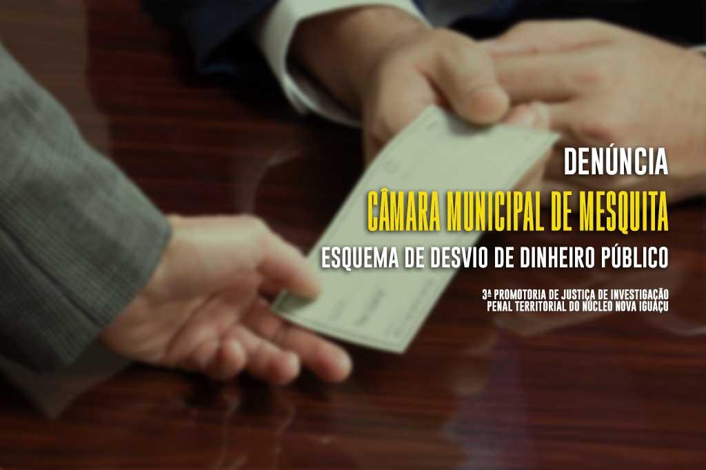 O Ministério Público do Estado do Rio de Janeiro (MPRJ) denunciou, no dia 5 de maio, o presidente da Câmara Municipal de Mesquita, Saint Clair Esperança Passos, e outras sete pessoas por uma série de crimes envolvendo desvio de dinheiro público. Saint Clair é apontado pela 3ª Promotoria de Justiça de Investigação Penal Territorial do Núcleo Nova Iguaçu como líder da organização criminosa, aproveitando-se das suas funções de presidente para estruturar o esquema criminoso.