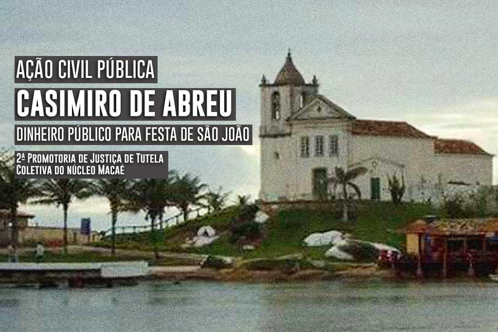 O Ministério Público do Estado do Rio de Janeiro (MPRJ), por meio da 2ª Promotoria de Justiça de Tutela Coletiva do Núcleo Macaé, ajuizou, nesta quarta-feira (15/06), ação civil pública com pedido de tutela antecipada para que a administração do município de Casimiro de Abreu se abstenha de realizar quaisquer pagamentos, por meio de verba pública, provenientes do erário, de despesas relacionadas à “Festa de São João Batista”, sob pena de multa pessoal diária de R$ 100 mil, ao prefeito Ramon Dias Gidalte. Para a festividade em questão, marcada para acontecer de 24 a 26 de junho, a prefeitura de Casimiro e Abreu onerou os cofres públicos em R$ 613.170,00.