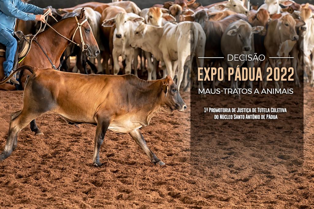 O Ministério Público do Estado do Rio de Janeiro (MPRJ), por meio da 1ª Promotoria de Justiça de Tutela Coletiva do Núcleo Santo Antônio de Pádua, obteve decisão liminar na Justiça para impedir maus-tratos contra animais, durante os eventos a serem realizados no âmbito da Expo Pádua 2022. O Juízo da 1ª Vara da Comarca de Santo Antônio de Pádua e Aperibé determinou que a empresa Kavallus, que promove o evento, não utilize técnicas e instrumentos cruéis aos animais e que são frequentemente utilizados em rodeios, como esporas, sédem (tira de couro que aperta a virilha do animal), choque, torção, retirada dos chifres, entre outros.