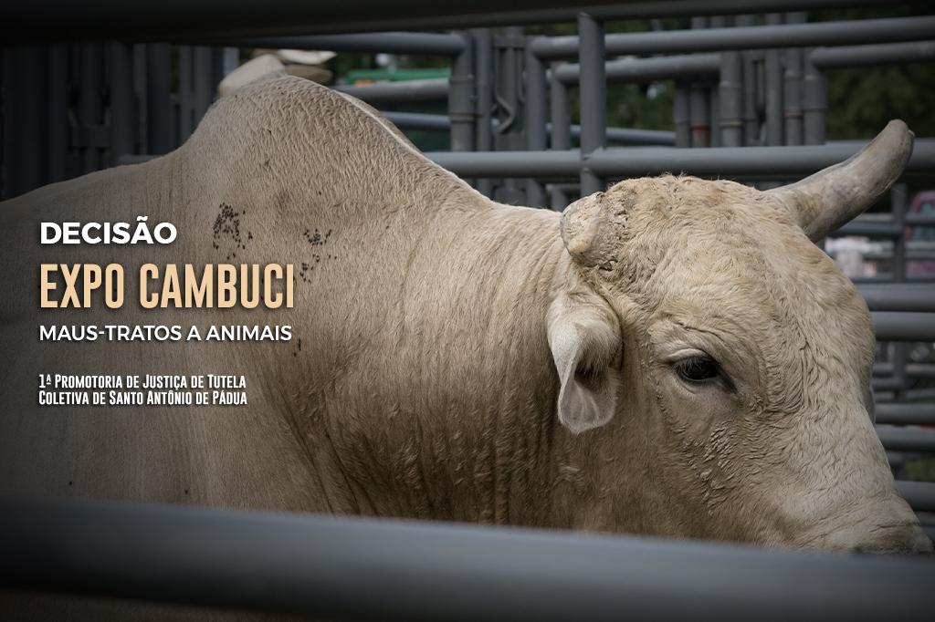 A 1ª Promotoria de Justiça de Tutela Coletiva de Santo Antônio de Pádua obteve decisão junto à Vara Única da Comarca de Cambuci e São José de Ubá para que durante a Expo Cambuci, nos dias 5, 6 e 7 de setembro, sejam respeitadas as exigências da Lei Federal 10.519/02s, que proíbe os maus-tratos e o flagelamento aos animais utilizados. São réus na ação o Município de Cambuci, Rodeio América Country Ltda e Marcarrão Eventos Ltda. O Juízo determinou multa de R$ 50 mil para cada descumprimento que vier a ser demonstrado, por cada animal submetido a prática, para cada um dos réus.