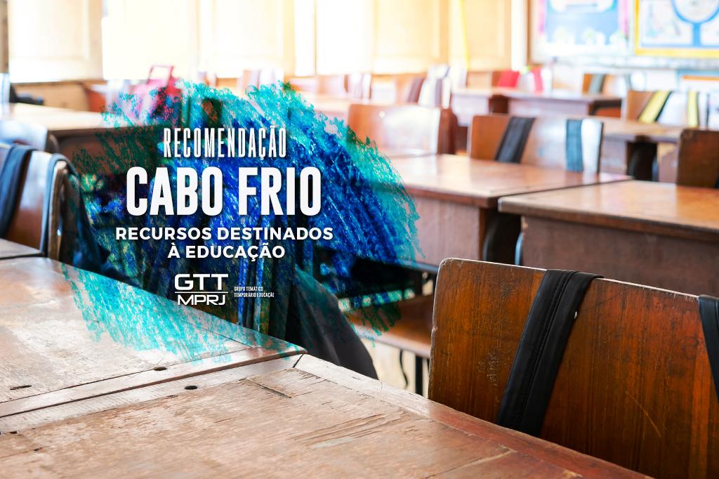 O Ministério Público do Estado do Rio de Janeiro (MPRJ), por meio do Grupo Temático Temporário de Educação (GTT Educação/MPRJ), expediu, na segunda-feira (12/09), recomendação voltada ao Prefeito do Município de Cabo Frio, José Bonifácio Ferreira Novellino, às secretárias municipais de Fazenda, Daniella Mendes, e de Educação, Elicéa da Silveira, para que adotem medidas administrativas relacionadas aos custeios de ações de manutenção e desenvolvimento da rede municipal de ensino.