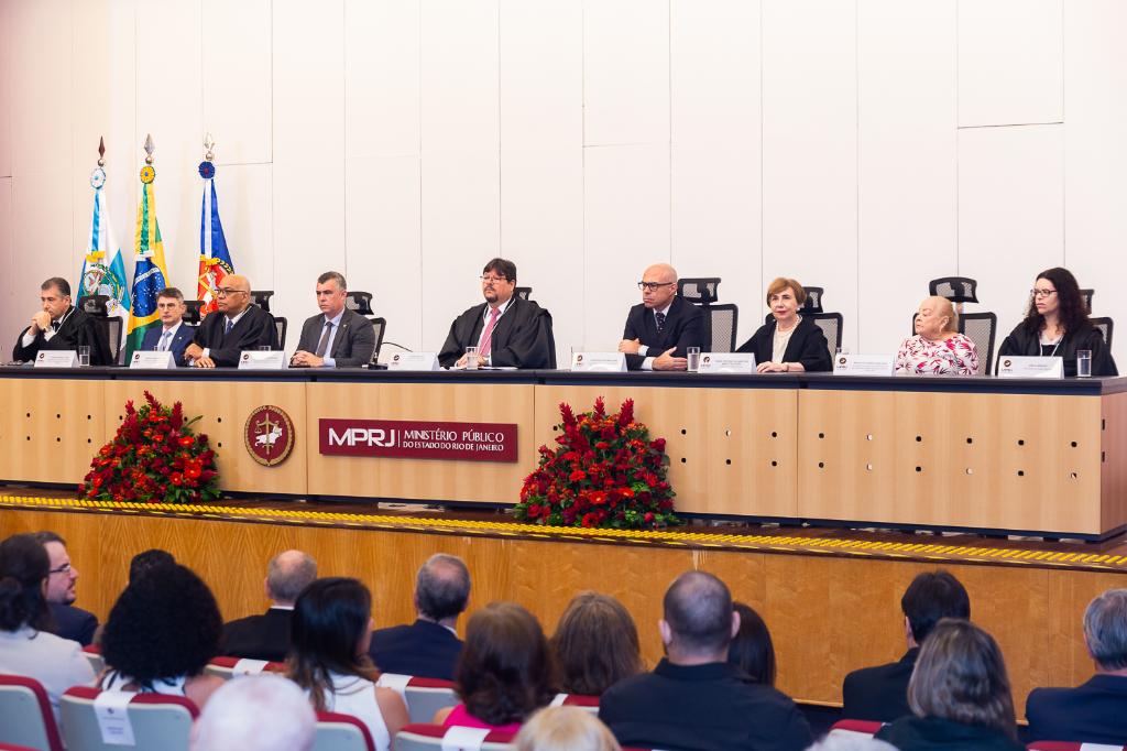 O procurador-geral de Justiça, Luciano Mattos presidiu a mesa da solenidade, também composta pela procuradora de Justiça Maria Cristina Palhares dos Anjos Tellechea, pelo corregedor-geral do MPRJ, Ricardo Ribeiro Martins; pelo presidente da Associação do Ministério Público do Estado do Rio de Janeiro (AMPERJ), Claudio Henrique da Cruz Viana; pela secretária do Órgão Especial, Carla Araújo; pela presidente do Centro dos Procuradores de Justiça (Ceprojus), Maria do Carmo dos Santos Casa Nova; pelo procurador-chefe da Procuradoria da República no RJ, Theophilo Antonio Filho; pelo presidente da Fundação Escola Superior do MPRJ (FEMPERJ), Sávio Renato Bittencourt; e pelo vice-procurador chefe da Procuradoria Regional do Trabalho da 1ª Região, Fabio Goulart Villela.