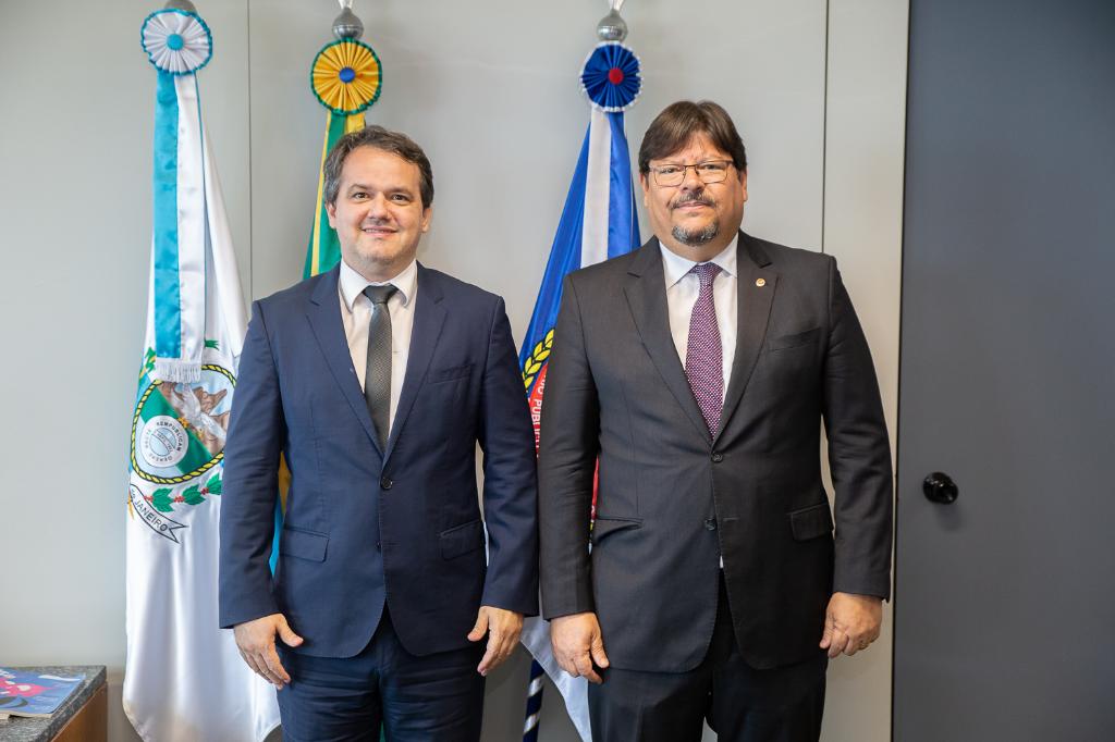 O procurador-geral de Justiça, Luciano Mattos, recebeu em seu gabinete, no Ministério Público do Estado do Rio de Janeiro (MPRJ), no início da tarde desta segunda-feira (27/02), a visita de Alexandre Magno Benites de Lacerda, PGJ do Ministério Público do Estado de Mato Grosso do Sul (MPMS). A visita, de cunho institucional, teve como objetivo a troca de experiências para projetos atuais e futuros entre as instituições, bem como para tratar de assuntos voltados à defesa dos direitos da sociedade.