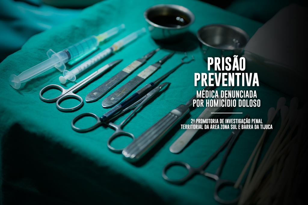 O Ministério Público do Estado do Rio de Janeiro (MPRJ), por meio da 2ª Promotoria de Investigação Penal Territorial da Área Zona Sul e Barra da Tijuca, denunciou e obteve a prisão preventiva da médica colombiana Eliana Maria Jimenez Diaz pelo homicídio de Ingrid Ramos Ferreira. A denunciada submeteu a vítima a um procedimento cirúrgico em ambiente inapropriado, sem os recursos profissionais e equipamentos necessários para garantir condições mínimas de segurança para a prática do procedimento.