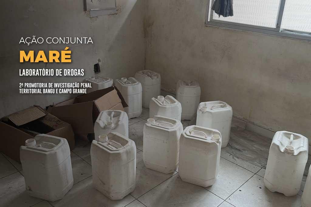 O Ministério Público do Estado do Rio de Janeiro (MPRJ), por meio da 2ª Promotoria de Investigação Penal Territorial Bangu e Campo Grande, e a Polícia Civil, por meio da 34ª DP (Bangu), encontraram, em ação conjunta, um depósito de drogas na Comunidade Parque União, no Complexo da Maré, na Zona Norte do Rio. No laboratório de produção de drogas foi apreendida grande quantidade de éter, substância usada na produção do entorpecente loló, centenas de frascos plásticos comumente usados para comportar a droga, tonéis e produtos químicos usados no refino de entorpecentes, entre outros itens.