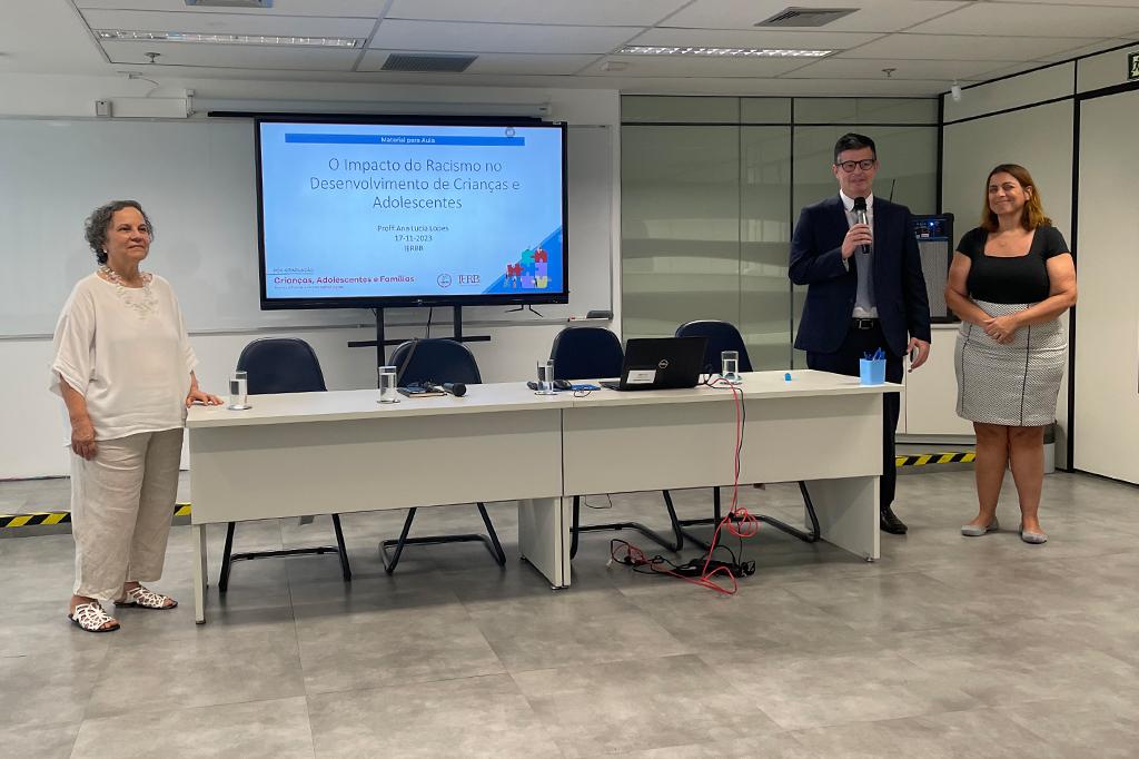 O Ministério Público do Estado do Rio de Janeiro (MPRJ), por meio do Instituto de Educação Roberto Bernardes Barroso (IERBB/MPRJ), realizou, na sexta-feira (17/11), aula aberta da pós-graduação em Crianças, Adolescentes e Famílias. O evento, oferecido de forma híbrida, teve como tema o “Impacto do racismo no desenvolvimento de crianças e adolescentes”. A abertura foi feita pelo promotor de Justiça e diretor do IERBB/MPRJ, Leandro Navega.