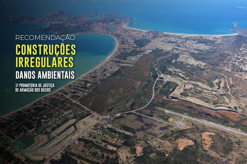 A 1ª Promotoria de Justiça de Armação dos Búzios e a 1° Promotoria de Justiça de Cabo Frio expediram, no dia 06/12, Recomendação ao Município de Armação dos Búzios para que crie, em até 30 dias, força-tarefa integrada pela Guarda Municipal e órgãos responsáveis pela segurança pública, gestão ambiental e urbanística, com o intuito de coibir o avanço das construções irregulares, invasões de terra e a prática de crimes ambientais na cidade. Os integrantes dessa FT deverão ser informados ao MPRJ com discriminação de função e órgão de lotação.