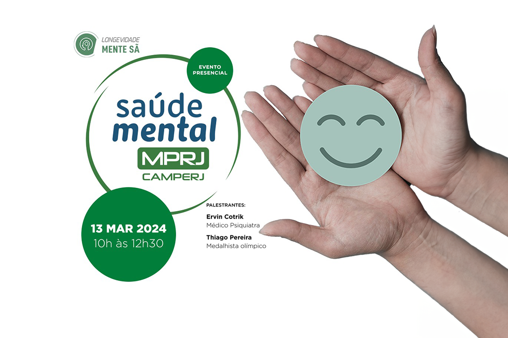 O Ministério Público do Estado do Rio de Janeiro, através da Subprocuradoria-Geral de Administração, da Coordenadora-Geral de Promoção da Dignidade da Pessoa Humana (COGEPDPH/MPRJ), do Núcleo de Saúde Ocupacional (NSO/MPRJ), do Instituto de Educação Roberto Bernardes Barroso (IERBB/MPRJ) e da Camperj, realizará, no próximo dia 13/03, um evento presencial dedicado à saúde mental, com palestras e formações a respeito do assunto.