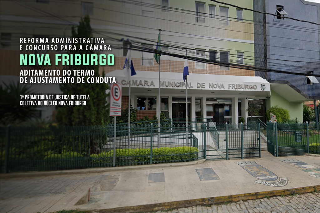 O Ministério Público do Estado do Rio de Janeiro (MPRJ), por meio da 1ª Promotoria de Justiça de Tutela Coletiva do Núcleo Nova Friburgo, e a Câmara Municipal de Nova Friburgo assinaram, na quinta-feira (15/08), Termo Aditivo ao Termo de Ajustamento de Conduta firmado em 2019, assinalando novo prazo final de 31 de dezembro de 2025 para a conclusão da reforma administrativa da Casa Legislativa (o prazo inicial era 31/12/2019) e de 31 de dezembro de 2026 para a homologação do concurso público (prazo inicial de 31/12/2020), seguida da convocação dos aprovados.