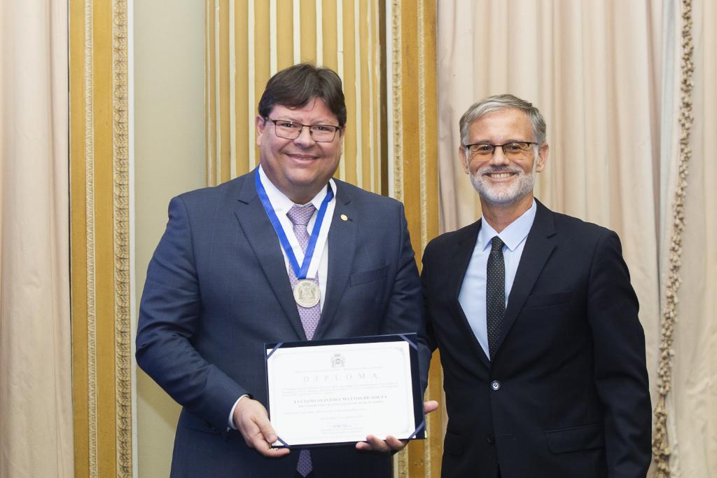 O procurador-geral de Justiça, Luciano Mattos, recebeu, nesta sexta-feira (25/10), a Medalha de Mérito San Tiago Dantas, uma das maiores distinções da Procuradoria Geral do Município do Rio de Janeiro (PGM-RJ). "Receber a Medalha de Mérito San Tiago Dantas é uma honra que muito me emociona e reforça o compromisso com a atuação em prol da sociedade e da justiça pública. Esse reconhecimento não só valoriza o trabalho realizado, mas também destaca a importância da união entre as instituições em defesa dos interesses do município e da população carioca," destacou o PGJ.