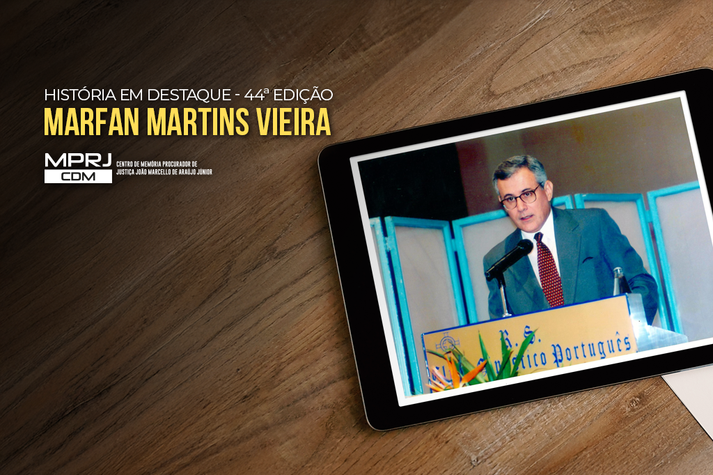 O Centro de Memória João Marcello de Araújo Júnior destacará, em duas edições do História em Destaque, a trajetória profissional do ex-procurador-geral de Justiça, Marfan Martins Vieira. Nesta 44ª edição do projeto, será apresentado seu histórico associativo, com destaque para sua atuação na AMPERJ (Associação do Ministério Público do Estado do Rio de Janeiro) e na CONAMP (Confederação Nacional do Ministério Público).