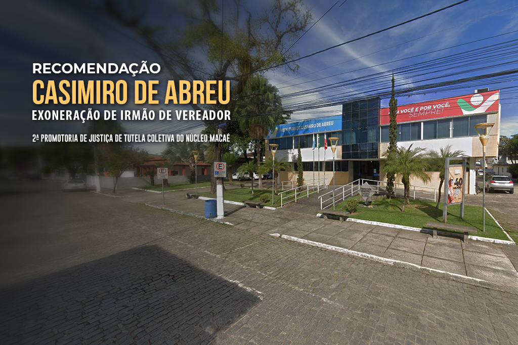 O Ministério Público do Estado do Rio de Janeiro (MPRJ), por meio da 2ª Promotoria de Justiça de Tutela Coletiva do Núcleo Macaé, expediu, nesta quinta-feira (19/12), Recomendação para que o prefeito de Casimiro de Abreu, Ramon Dias Gidalte, exonere do cargo de assessor especial Luiz Henrique do Couto Paschoal, irmão do vereador Carlos Eduardo do Couto Paschoal. Requer o MPRJ que seja informado, no prazo máximo de 15 dias, por escrito e documentalmente, sobre as providências adotadas.