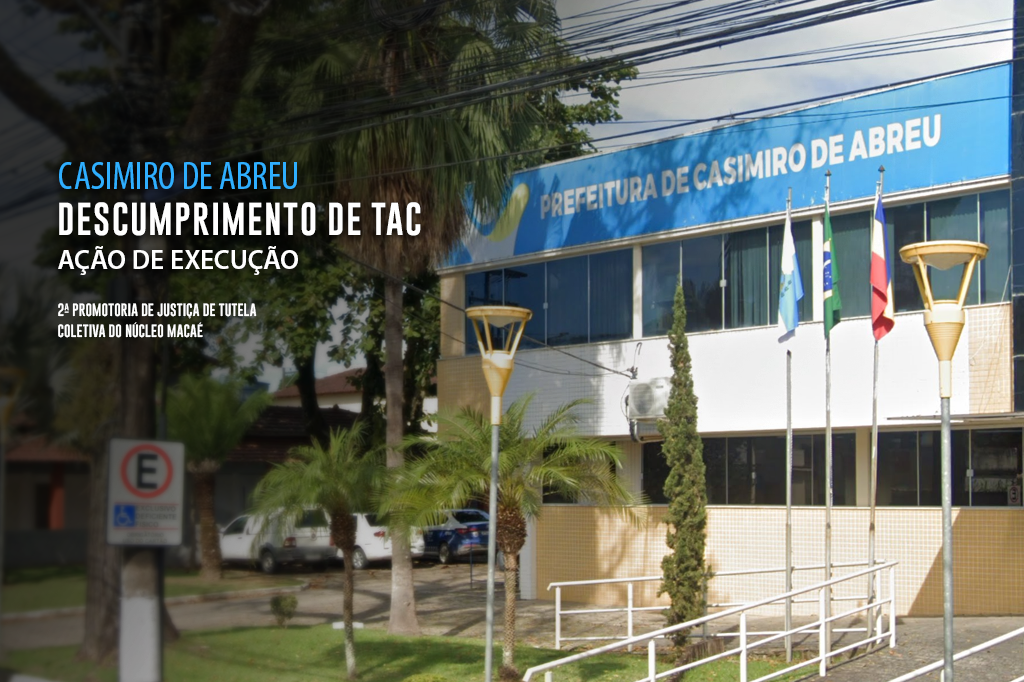 O Ministério Público do Estado do Rio de Janeiro (MPRJ), por meio da 2ª Promotoria de Justiça de Tutela Coletiva do Núcleo Macaé, ajuizou ação de execução contra o prefeito de Casimiro de Abreu, Ramon Dias Gidalte, em razão da violação de compromissos assumidos em Termo de Ajustamento de Conduta (TAC). A promotoria requer à Justiça a condenação do prefeito ao pagamento de perdas e danos no valor integral do contrato que foi celebrado - R$ 45 milhões.