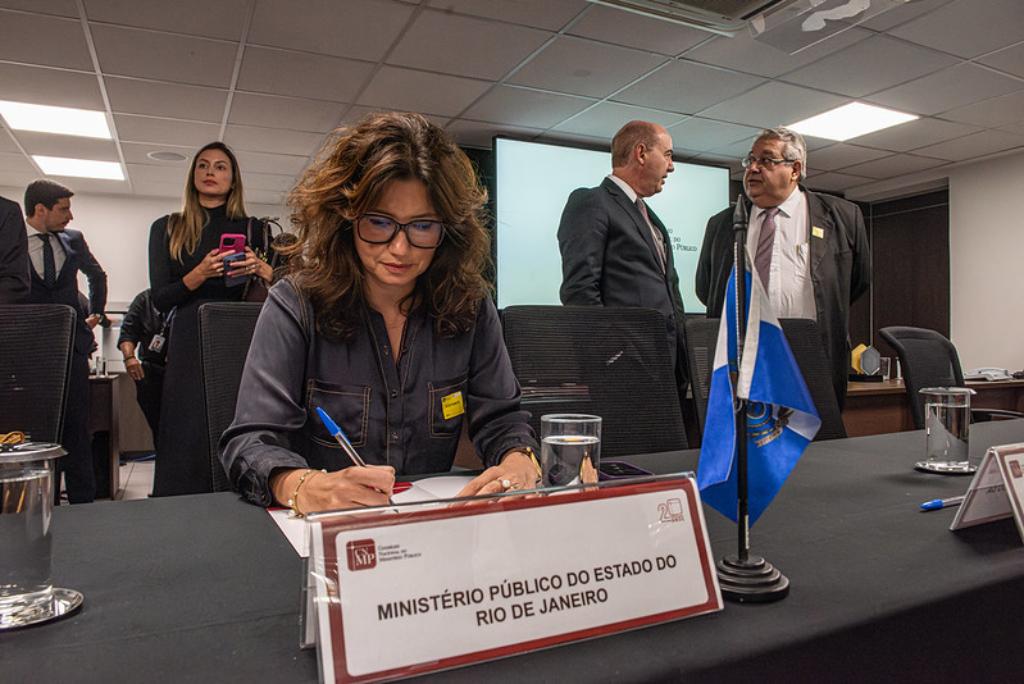 O Centro de Apoio Operacional das Promotorias de Justiça de Combate à Violência Doméstica e Familiar Contra a Mulher do Ministério Público do Estado do Rio de Janeiro (CAO Violência Doméstica e Familiar contra a Mulher/MPRJ), através da subcoordenadora, Eyleen Marenco, assinou na terça-feira (08/04), no Conselho Nacional do Ministério Público (CNMP), um protocolo de intenções para desenvolver o programa "Antes que Aconteça" no MPRJ. O programa é voltado à prevenção e ao fortalecimento das políticas de combate à violência contra a mulher. Eyleen Marenco também participou do ciclo de debates, ocorrido no mesmo dia e promovido pela Corregedoria Geral, com a temática "Violência Contra a mulher" e "Violência na Educação Infantojuvenil".
