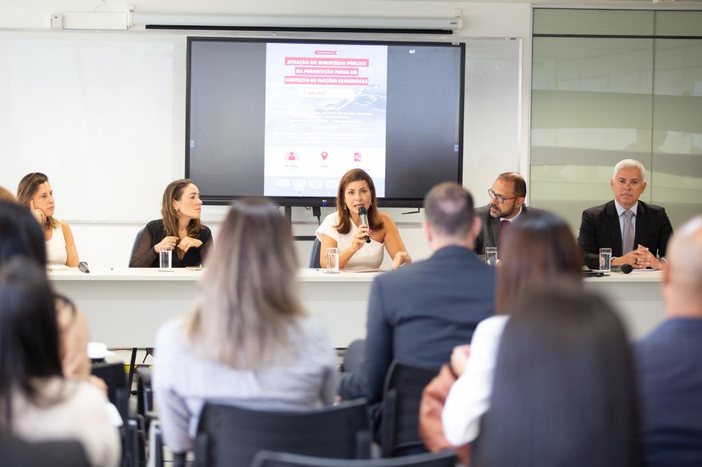 A mesa de abertura foi composta pela coordenadora do CAO Criminal/MPRJ e do GAEJURI/MPRJ, Simone Sibilio, pela subcoordenadora do GAEJURI/MPRJ, Roberta Maristela dos Anjos, pela coordenadora do CAO Investigação Penal/MPRJ, Luciana Benisti, pela subcoordenadora do CAO Execução Penal/MPRJ, Flávia Abido, pelo coordenador do GAESP/MPRJ, Fabio Corrêa, e pelo vice-diretor do IERBB/MPRJ, Alexandre Joppert.