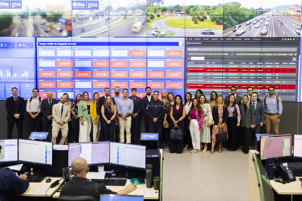 Promotores de Justiça do Ministério Público do Estado do Rio de Janeiro (MPRJ) estiveram, na manhã desta sexta-feira (06/06), no Centro Integrado de Comando e Controle (CICC), na Cidade Nova, para conhecer a estrutura e o funcionamento do prédio, que abriga as forças de segurança. Os membros, que atuam em promotorias criminais, de investigação penal e no Júri, foram recebidos pelo subsecretário de Comando e Controle, coronel Fábio Laviola. A coordenadora e a subcoordenadora do Centro de Apoio Operacional das Promotorias de Justiça de Investigação Penal (CAO Investigação Penal/MPRJ), Luciana Benisti e Anna Gabriella Gama Taunay, e a subcoordenadora do Centro de Apoio Operacional das Promotorias de Justiça Criminais (CAO Criminal/MPRJ), Roberta Maristela dos Anjos, também estiveram no CICC.