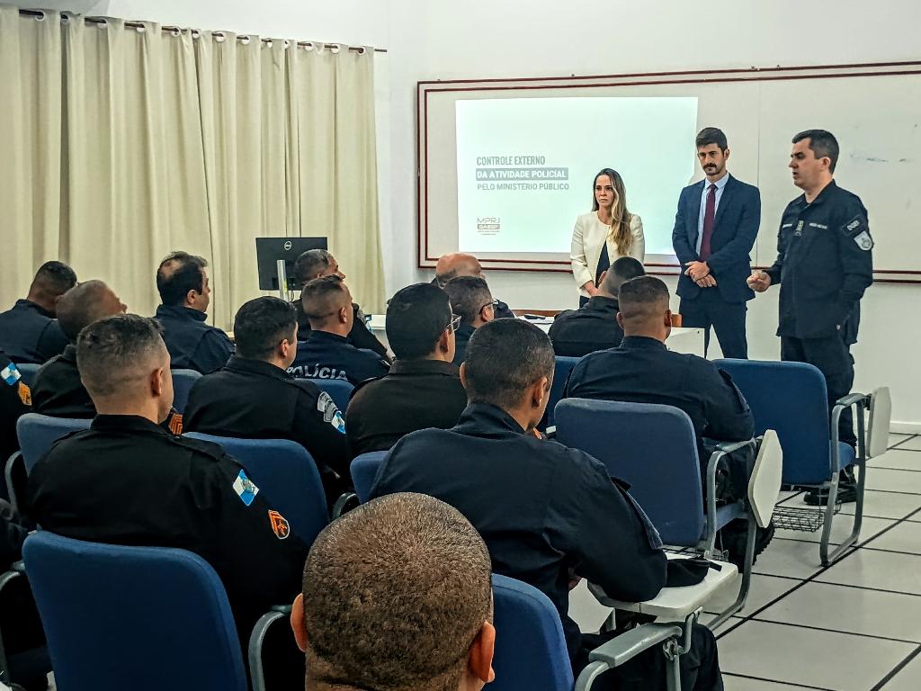 Os promotores de Justiça Michel Zoucas e Renata Cossatis, integrantes do Grupo de Atuação Especial em Segurança Pública (GAESP/MPRJ), participam, nesta terça-feira (15/07), do Programa de Aprimoramento Policial Militar (PAPM), promovido pela Secretaria de Estado de Polícia Militar. Realizado no Centro de Formação e Aperfeiçoamento de Praças (CFAP), em Sulacap, o PAPM tem por objetivo capacitar o efetivo da PM com foco em atuação qualificada e respeito aos Direitos Humanos, por meio de atividades práticas e teóricas que simulam o cotidiano das operações de segurança pública.