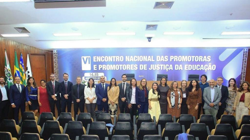 Os desafios contemporâneos da educação no Brasil estão entre os temas debatidos no VI Encontro Nacional das Promotoras e Promotores de Justiça da Educação, realizado no Ministério Público do Estado de Goiás (MPGO), nos dias 14 e 15 de agosto. Participaram do evento as promotoras de Justiça Bianca Mota e Stella Fernandes Rodrigues Baltar, respectivamente coordenadora e subcoordenadora do Centro de Apoio Operacional das Promotorias de Justiça de Tutela Coletiva de Proteção à Educação do Ministério Público do Estado do Rio de Janeiro (CAO Educação/MPRJ), e Rosana Cipriano, titular da 1ª Promotoria de Justiça de Tutela Coletiva de Proteção à Educação da Capital.