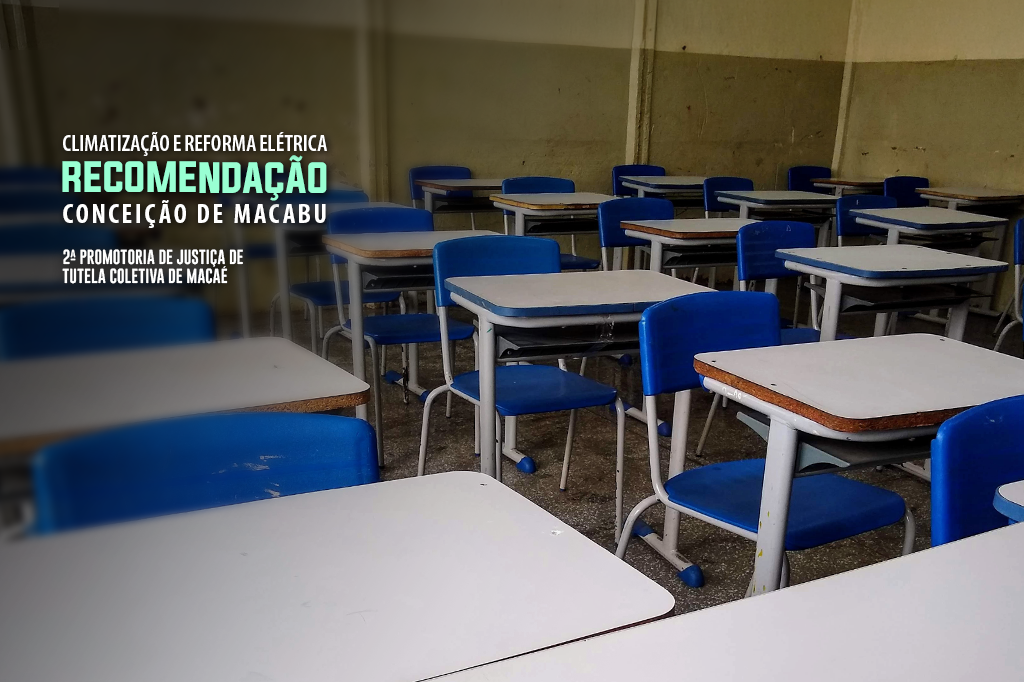 O Ministério Público do Estado do Rio de Janeiro (MPRJ) expediu, nesta segunda-feira (18/08), Recomendação ao prefeito de Conceição de Macabu, Valmir Tavares Lessa, e à secretária de Educação, Cristiana da Silva Monteiro, para que adotem medidas imediatas de implementação de sistemas de climatização e regularização das instalações elétricas nas escolas da rede municipal.