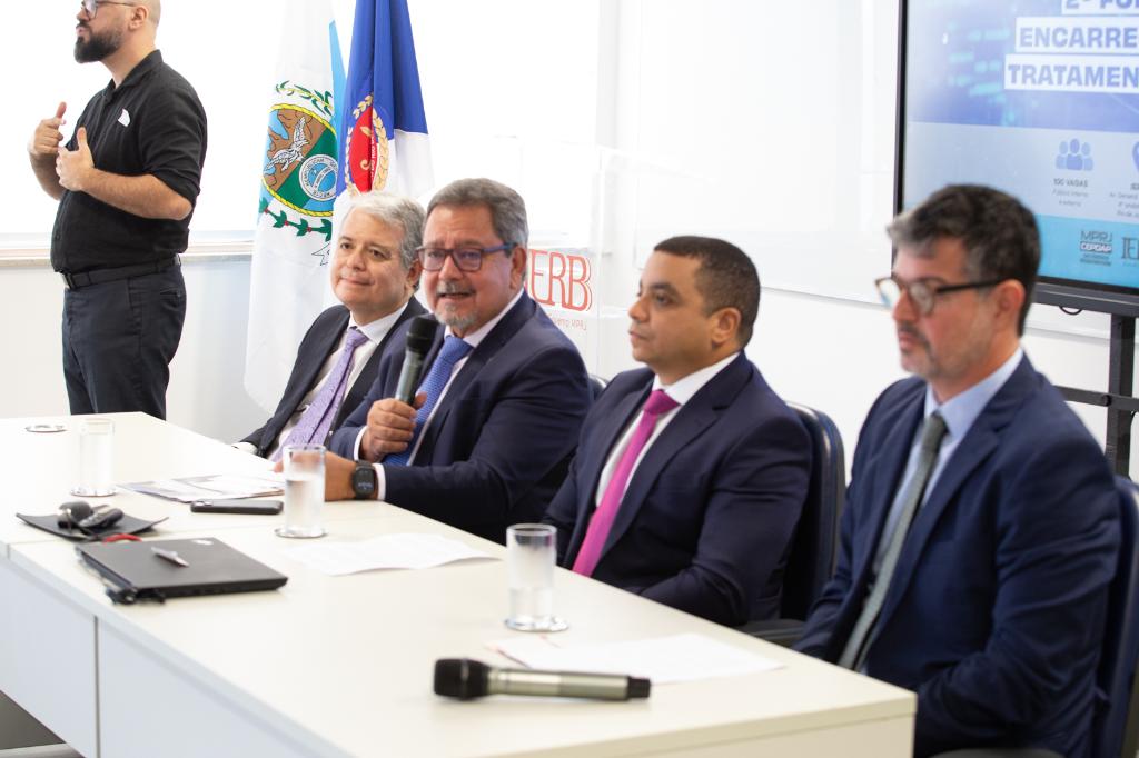 A mesa de abertura contou com a participação do procurador-geral de Justiça, Antonio José Campos Moreira; do promotor de Justiça Leandro Navega, Diretor do IERBB; do procurador de Justiça Guilherme Martins, Encarregado de Dados do MPRJ e de Rodrigo Corrêa, Secretário Municipal de Integridade, Transparência e Proteção de Dados do Rio de Janeiro.