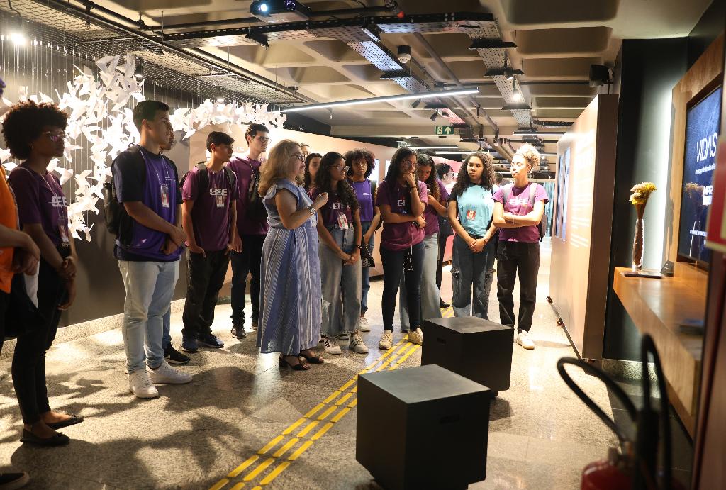 A atividade teve início com a apresentação do memorial “Vidas Marcadas”, conduzida pela procuradora de Justiça Patrícia Leite Carvão. O espaço, recém-inaugurado, reúne registros, fotografias e depoimentos que convidam à reflexão sobre questões como crimes de ódio, violência de gênero, infâncias perdidas e criminalidade organizada, temas que dialogam diretamente com a atuação do Ministério Público na defesa dos direitos humanos. Durante a apresentação, os alunos puderam conhecer as histórias retratadas na mostra e compreender como a memória institucional pode ser um instrumento de conscientização social, reflexão crítica e valorização da dignidade humana.