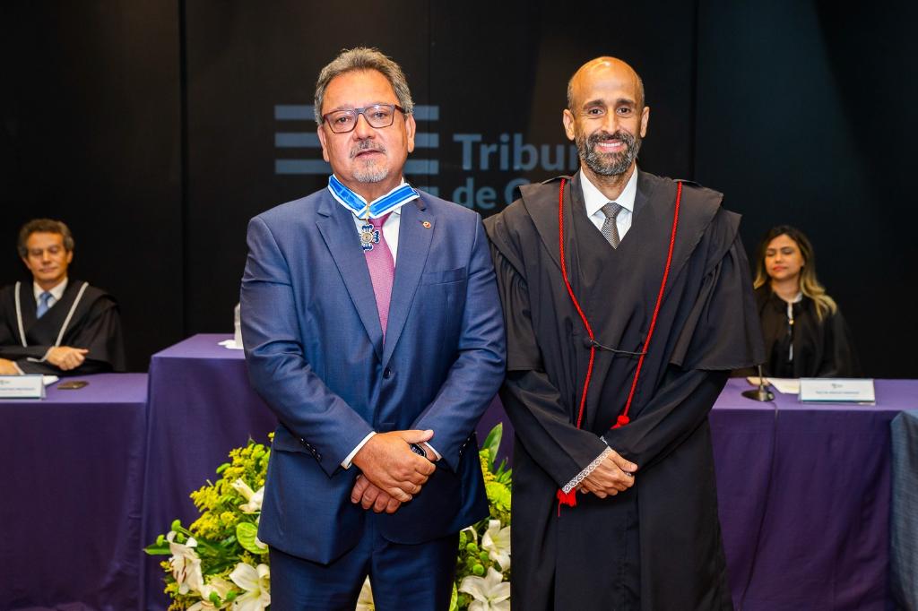 O procurador-geral de Justiça, Antonio José Campos Moreira, e o coordenador do Grupo de Atuação Especializada de Defesa da Integridade e Repressão à Sonegação Fiscal (GAESF/MPRJ), Décio Luiz Alonso Gomes, foram agraciados  com o Colar do Mérito do Tribunal de Contas do Estado do Rio de Janeiro (TCE-RJ), em cerimônia realizada nesta segunda-feira (10/11), na sede do órgão.