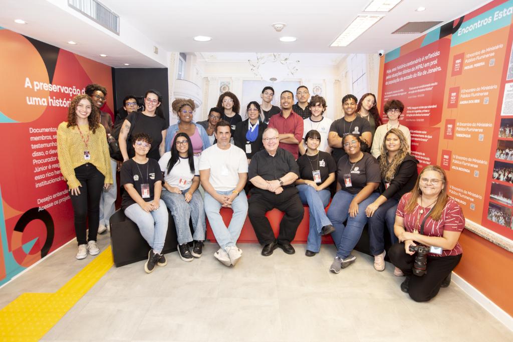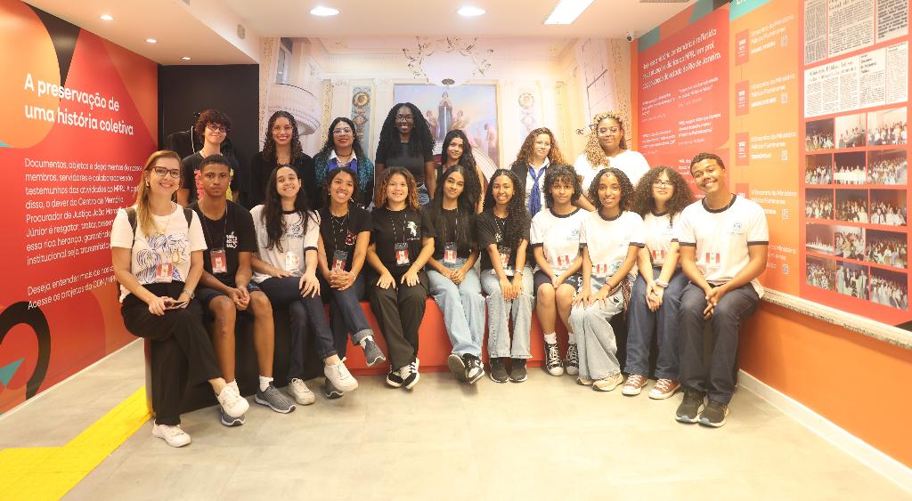 O Ministério Público do Estado do Rio de Janeiro (MPRJ), por meio do Centro de Memória Procurador de Justiça João Marcello de Araújo Júnior (CDM/MPRJ), recebeu, nesta terça-feira (18/11), estudantes do Colégio Estadual Vereador Percy Batista Crispim, de Nova Iguaçu, para uma visita ao Memorial Vidas Marcadas, recepcionados pela coordenadora do Núcleo de Atendimento às Vítimas (NAV/MPRJ), procuradora de Justiça Patrícia Carvão, e às exposições Congressos e Encontros: em Construção da Cidadania e O MP e o Novo Estado: os 50 anos da Fusão.