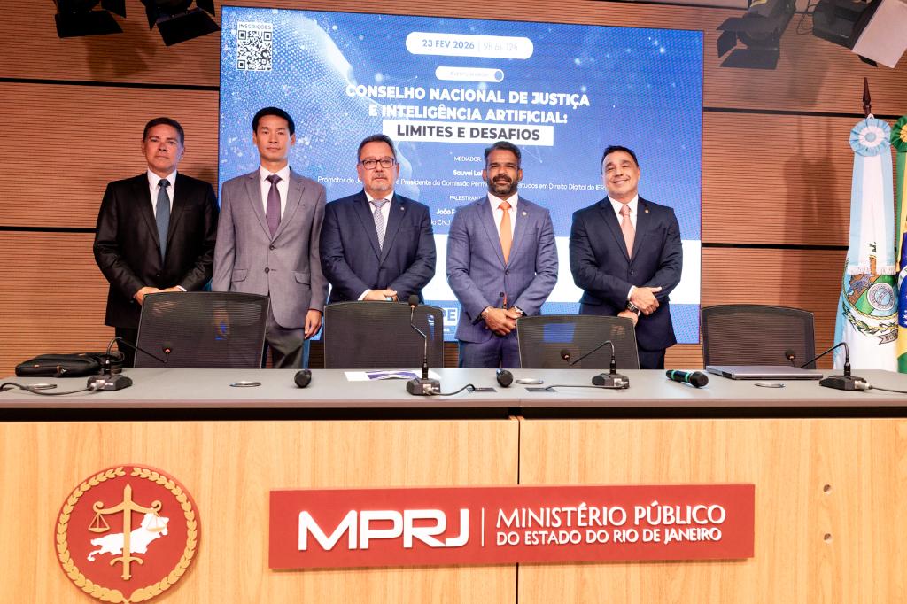 O procurador-geral de Justiça, Antonio José Campos Moreira, participou da abertura do evento “Conselho Nacional de Justiça e Inteligência Artificial – Limites e Desafios”, nesta segunda-feira (23/02), que abordou o uso de tecnologias digitais no Judiciário e seus impactos institucionais. O encontro discutiu temas como a automação de processos, a análise de dados para apoio a investigações, a segurança da informação e os desafios éticos no uso da inteligência artificial, tendo sido promovido pelo Instituto de Educação Roberto Bernardes Barroso (IERBB), no edifício-sede do MPRJ.