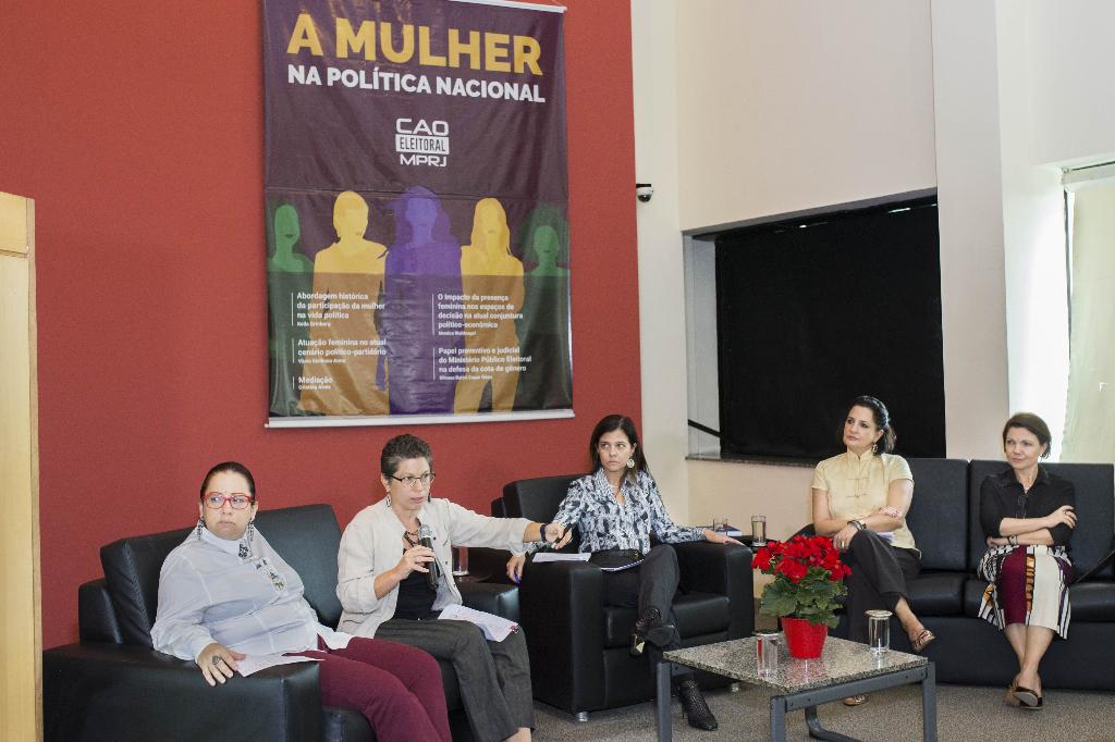 O Ministério Público do Estado do Rio de Janeiro (MPRJ), por meio do Centro de Apoio Operacional das Promotorias Eleitorais (CAO Eleitoral/MPRJ), realizou nesta sexta-feira (27/10), o painel “A Mulher na Política Nacional”, que debateu o espaço da mulher no ambiente político e as possíveis causas de sua pouca e inexpressiva inserção neste meio. Participaram como palestrantes a historiadora e professora da UFRJ, Keila Grinberg; a advogada e professora adjunta da UERJ, Vânia Aieta; a jornalista Mônica Waldvogel; e a procuradora da república Silvana Batini Cesar. O debate foi mediado pela jornalista Cristina Alves.
