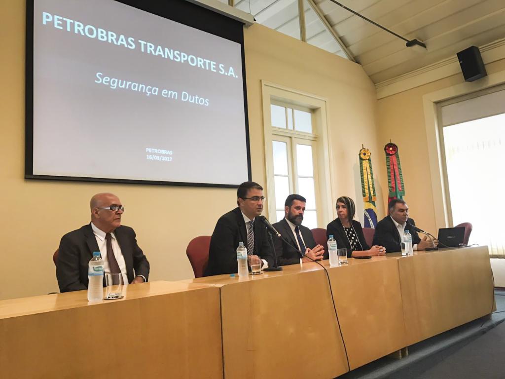 O coordenador do GAECO, Cláucio Cardoso, participou do painel “Derivações clandestinas em oleodutos”. Ele ressaltou que o GAECO-MPRJ tem tratado com prioridade o combate as derivações clandestinas cuja prática está vinculada à atividade de organizações criminosas estruturadas tendo estabelecido parceria com a Polícia Civil e Inteligência da Petrobrás para o combate a esse tipo de criminalidade.