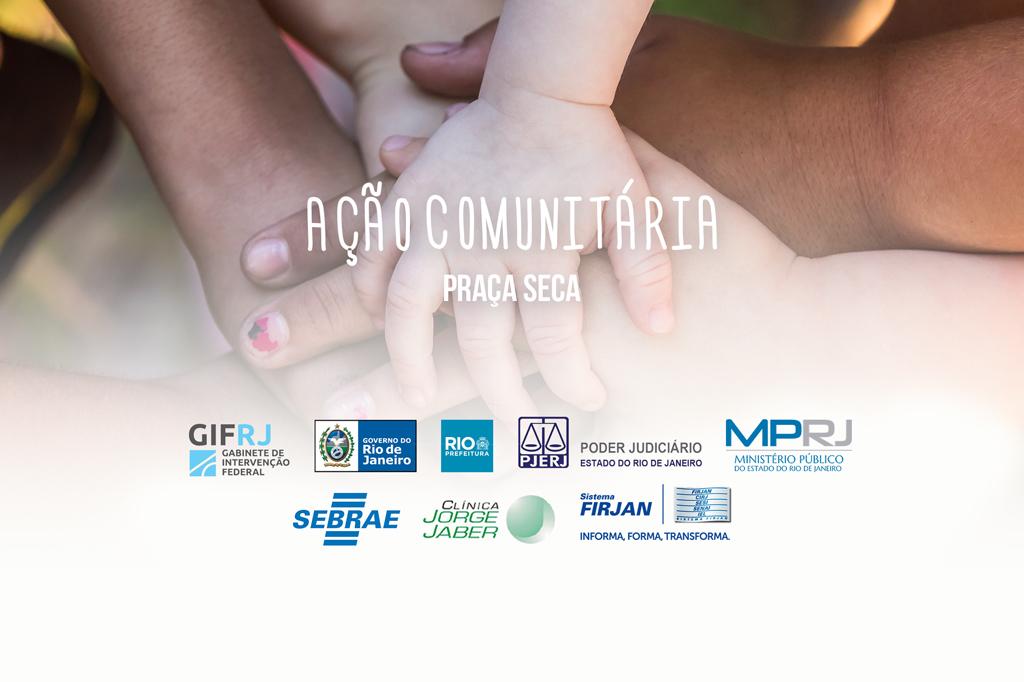O Gabinete de Intervenção Federal e o Comando Conjunto, em parceria com agências dos governos estadual e municipal, instituições jurídicas e iniciativa privada realizam Ação Comunitária na Vila Olímpica da Praça Seca, em Jacarepaguá, na Zona Oeste do Rio, no próximo dia sábado (9/06), entre 8h e 16h. O Ministério Público do Estado do Rio de Janeiro (MPRJ) irá participar por meio da Ouvidoria Itinerante.
