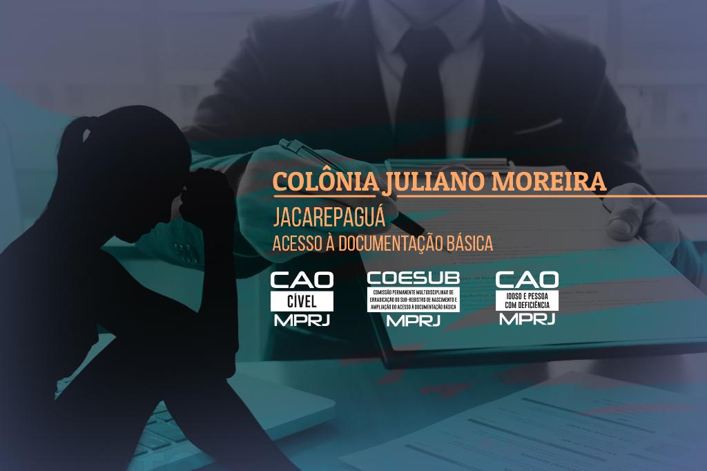 Pelo MPRJ, participaram da reunião a coordenadora do Centro de Apoio Operacional das Promotorias de Justiça de Proteção ao Idoso e à Pessoa com Deficiência (CAO Idoso/MPRJ), Cristiane Branquinho; a coordenadora do Centro de Apoio Operacional das Promotorias de Justiça Cíveis (CAO Cível/MPRJ), Barbara Spier; a assistente social da Comissão Permanente Multidisciplinar de Erradicação do Sub-registro de Nascimento e Ampliação do Acesso à Documentação Básica (COESUB/MPRJ), Tula Vieira, e a assistente Thamyres Caldas Moreira. Pela Colônia Juliano Moreira, participaram as diretoras Virgínia Castanho, Cleide Carneiro e Bruna de Barros.