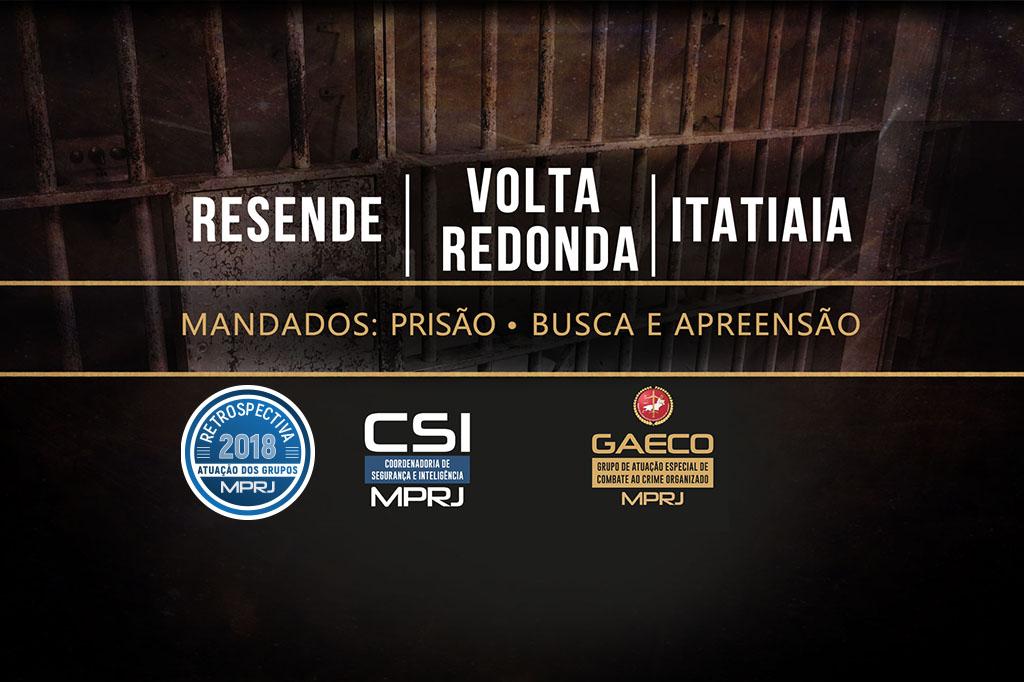 O Ministério Público do Estado do Rio de Janeiro (MPRJ) participa nesta terça-feira (16/10), por meio do Grupo de Atuação Especial de Combate ao Crime Organizado (GAECO/MPRJ) e da Coordenadoria de Segurança e Inteligência (CSI/MPRJ), das operações Sideros e Confinados para o cumprimento de 100 mandados de prisão e 191 mandados de busca e apreensão, com o intuito de desbaratar organização criminosa que atua nas cidades de Volta Redonda, Itatiaia e Resende. O esquema envolve 32 policiais militares do 28º BPM (Volta Redonda), acusados de associação criminosa armada, corrupção, tráfico de drogas, roubo, dentre outros crimes, devido ao envolvimento com traficantes em troca da permissão ao comércio de drogas nos três municípios. As operações são realizadas em parceria com a Polícia Federal, a Corregedoria e a Coordenadoria de Inteligência da Polícia Militar do Estado do Rio, além do próprio 28º BPM.