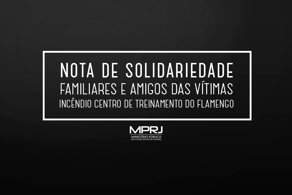 O Ministério Público do Estado do Rio de Janeiro (MPRJ) lamenta profundamente o incêndio ocorrido no Centro de Treinamento do Flamengo no início da manhã desta sexta-feira (08/02) e manifesta a sua solidariedade ao clube, familiares e amigos dos jovens atletas de base mortos na tragédia.