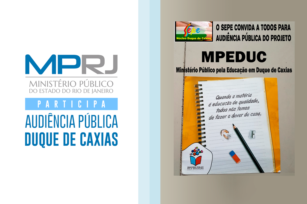 O Ministério Público do Estado do Rio de Janeiro (MPRJ), em parceria com o Ministério Público Federal (MPF), com o apoio da Prefeitura de Duque de Caxias e do Sindicato Estadual dos Profissionais de Educação (SEPE) convida alunos, responsáveis, professores e toda a comunidade para a Audiência Pública, que se realizará no dia 27/04, de 8h às 13h, no Colégio Pedro II - unidade Duque de Caxias.