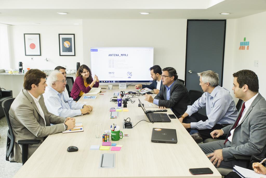 O Ministério Público do Estado do Rio de Janeiro (MPRJ), por meio do Laboratório de Inovação (Inova/MPRJ), recebeu, nesta quarta-feira (04/12), quatro especialistas em inovações no setor público para troca de informações sobre a estratégia de inovação e pesquisa no MP fluminense. Chamado de Antena MPRJ, o evento reuniu o ex-presidente da Escola Nacional de Administração Pública (Enap), Francisco Gaetani; o diretor de Inovação e Gestão do Conhecimento da Enap, Guilherme de Almeida; o coordenador de Governança e Capacidades Estatais do Instituto de Pesquisa Econômica Aplicada (Ipea), Pedro Cavalcante, e o gerente do Programa Cidades e Territórios do Instituto Arapyaú, Marcelo Cabral.