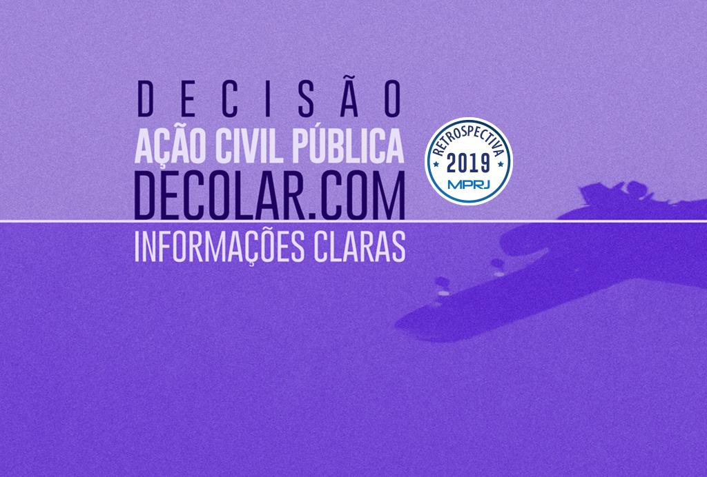 Na ACP (nº 0111117-27.2019.8.19.0001), o MPRJ aponta que os preços anunciados na página inicial da empresa não correspondem aos das ofertas efetivas, sendo frequentemente superiores e que, em seu termo de adesão, a Decolar se coloca como mera intermediadora entre o consumidor e fornecedores finais, estipulando cláusulas que a eximem da responsabilidade por falhas, prejuízos e alterações unilaterais ocorridas na prestação do serviço contratado. A juíza Maria Christina Berardo Rucker, titular do Cartório da 2ª Vara Empresarial da Comarca da Capital, determinou ainda que representante da empresa ré compareça à audiência de conciliação, marcada para 24 de julho, para tratar de outras medidas requeridas pelo parquet fluminense na mesma ação.