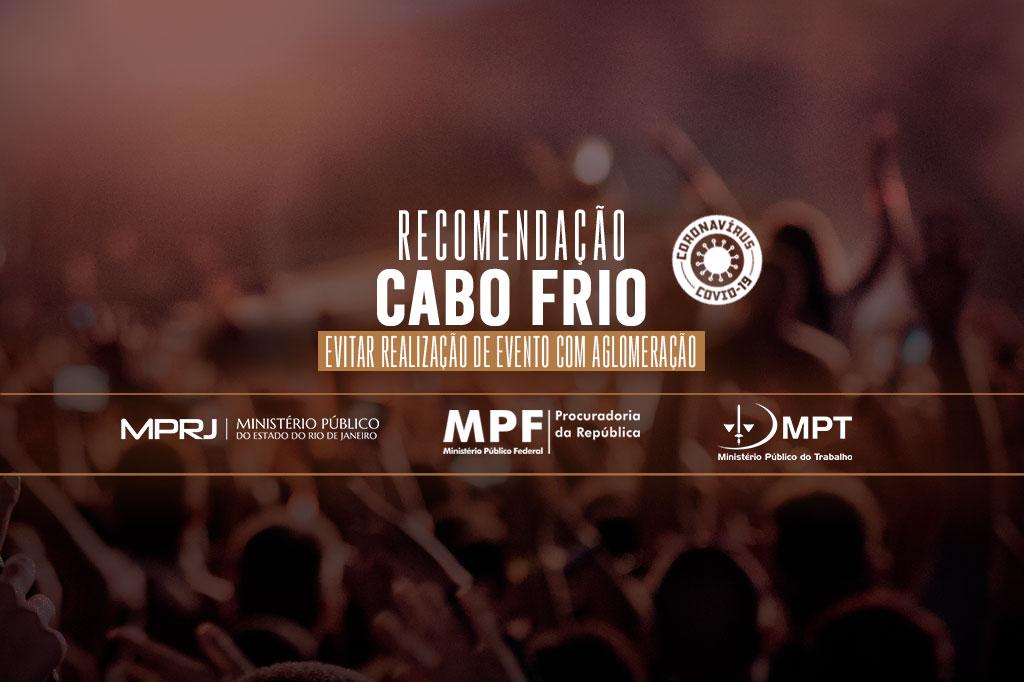 A Recomendação cita notícias dando conta de que grupos estão se organizando para realizar manifestações presenciais na cidade de Cabo Frio. Além de impedir a realização, o MPRJ recomenda que a prefeitura de Cabo Frio e o 25º BPM identifiquem os responsáveis pela organização e os eventuais participantes, comunicando imediatamente a Polícia Civil, a Promotoria de Investigação Penal de Cabo Frio e a Promotoria de Justiça junto ao Juizado Especial Criminal de Cabo Frio, para que avaliem as medidas legais a serem tomadas.