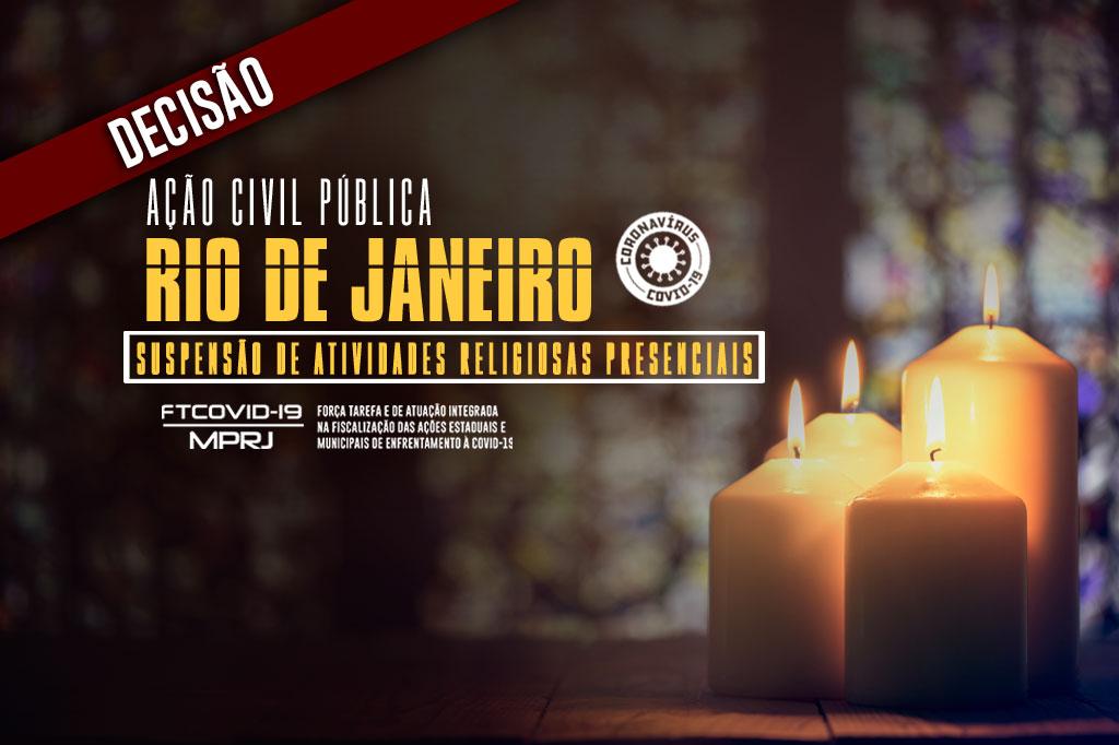 O Ministério Público do Estado do Rio de Janeiro (MPRJ), por meio da 7ª Promotoria de Justiça de Tutela Coletiva da Capital e da Força Tarefa de Atuação Integrada na Fiscalização das Ações Estaduais e Municipais de Enfrentamento à Covid-19/MPRJ (FTCOVID/MPRJ), obteve na Justiça, nesta sexta-feira (29/05), decisão favorável à ação civil pública com pedido de tutela de urgência ajuizada no dia anterior (28/05), contra o município do Rio para suspender os efeitos do decreto que readmite a realização de atividades religiosas presenciais na cidade.