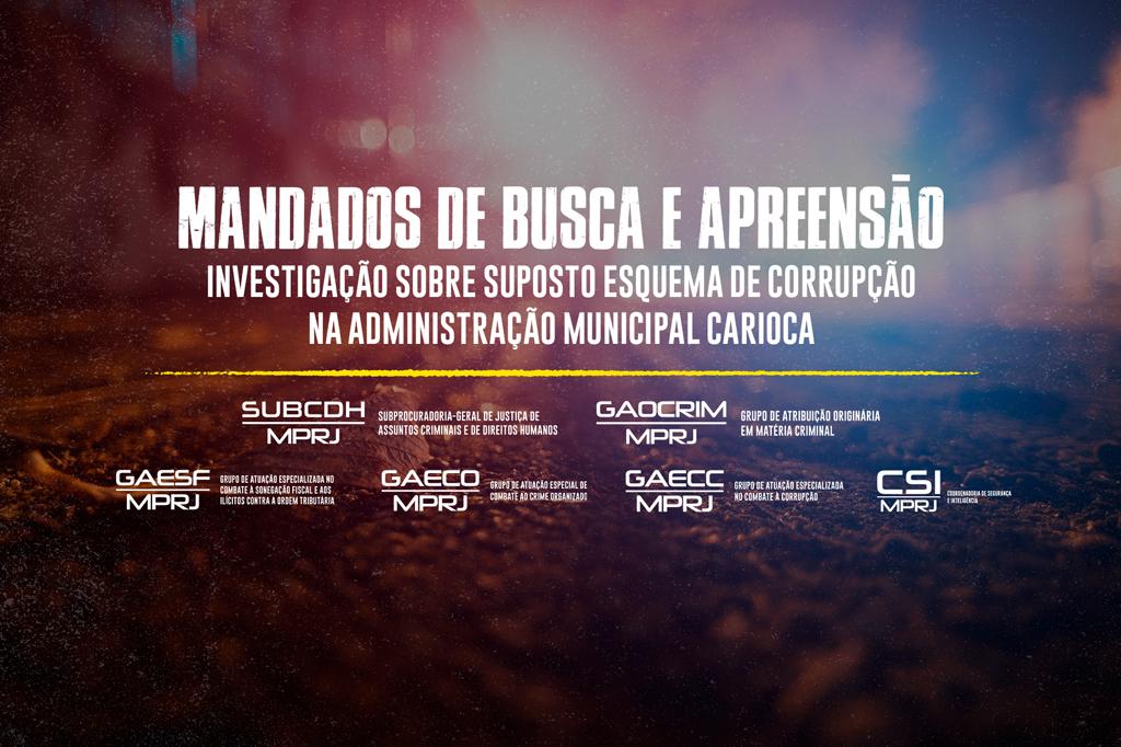 As diligências estão sendo cumpridas em endereços residenciais e funcionais de agentes públicos municipais e empresários na Capital, nos bairros da Barra da Tijuca, Jacarepaguá, Tijuca, Flamengo, e em Itaipava e Nilópolis. A ação conta com a participação de membros do GAESF/MPRJ, GAECO/MPRJ e GAECC/MPRJ, bem como de agentes da Coordenadoria de Segurança e Inteligência (CSI/MPRJ).