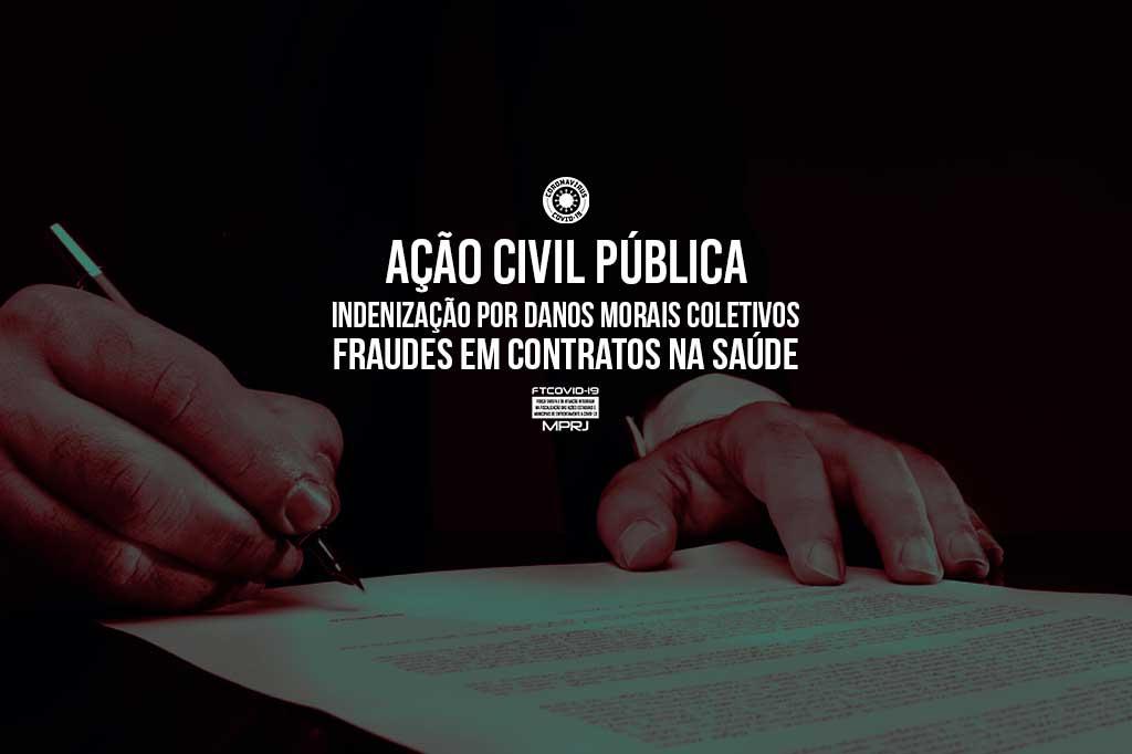No lugar de realizar contratações regulares, adequadas à realidade regional com o objetivo de atender às demandas locais, os citados agentes públicos, valendo-se da situação de emergência em saúde pública, instauraram e conduziram, no âmbito da Secretaria de Estado de Saúde, processos aquisitivos de equipamentos, medicamentos e insumos médicos repletos de fraudes, no bojo dos quais firmaram contratos ilegais que, somados, envolvem a ordem de centenas de milhões de reais. Assim, o MPRJ utiliza como referencial para postulação do valor do dano moral coletivo a ordem de grandeza do montante apurado da improbidade, pleiteando indenização à coletividade no já citado valor de R$ 100 milhões.