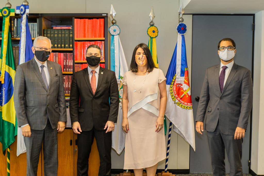 O Ministério Público do Estado do Rio de Janeiro (MPRJ), por meio do Subprocurador-geral de Justiça de Relações Institucionais e Defesa de Prerrogativas, Marfan Martins Vieira, e da Corregedora-Geral, Luciana Sapha Silveira, recebeu nesta segunda-feira (05/10) a visita do presidente das Comissões de Controle Administrativo e Financeiro e de Enfrentamento da Corrupção do Conselho Nacional do Ministério Público (CNMP), conselheiro Silvio Amorim. O visitante está percorrendo os Ministérios Públicos do país para analisar boas práticas de gestão e conheceu os projetos “Parquet Digital”, “Radar” e “Integra Judicial”, que têm por base a adoção de novas tecnologias e se destinam a aperfeiçoar a atuação do Parquet Fluminense.