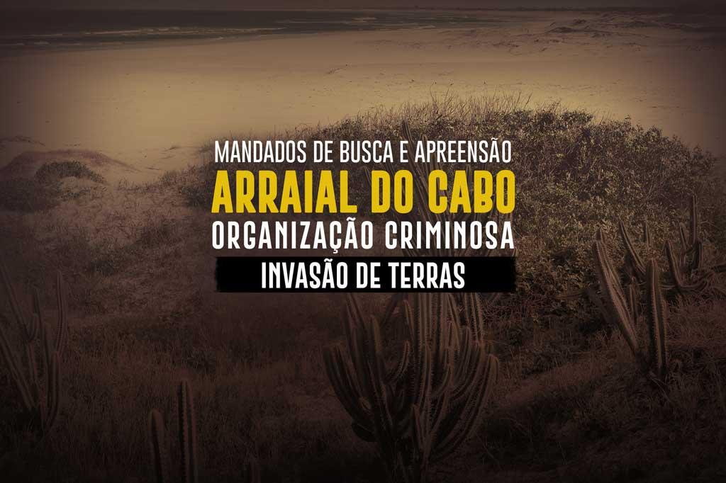O Ministério Público do Estado do Rio de Janeiro (MPRJ), por meio da Promotoria de Justiça de Arraial do Cabo, em parceria com a 132ª DP, realizou nesta quarta-feira (07/10) a operação “Máquina de Rapina”, para cumprir 10 mandados de busca e apreensão em endereços ligados a seis integrantes de uma organização criminosa responsável pelos crimes de invasão de terras, grilagem e estelionato. Dois dos denunciados, Mauro Cesar Gonçalves da Silva e Aluizo Mendes de Araújo, são funcionários da Prefeitura de Arraial do Cabo, e tiveram o afastamento da função pública decretado pela Vara Única do município, a pedido do MPRJ.
